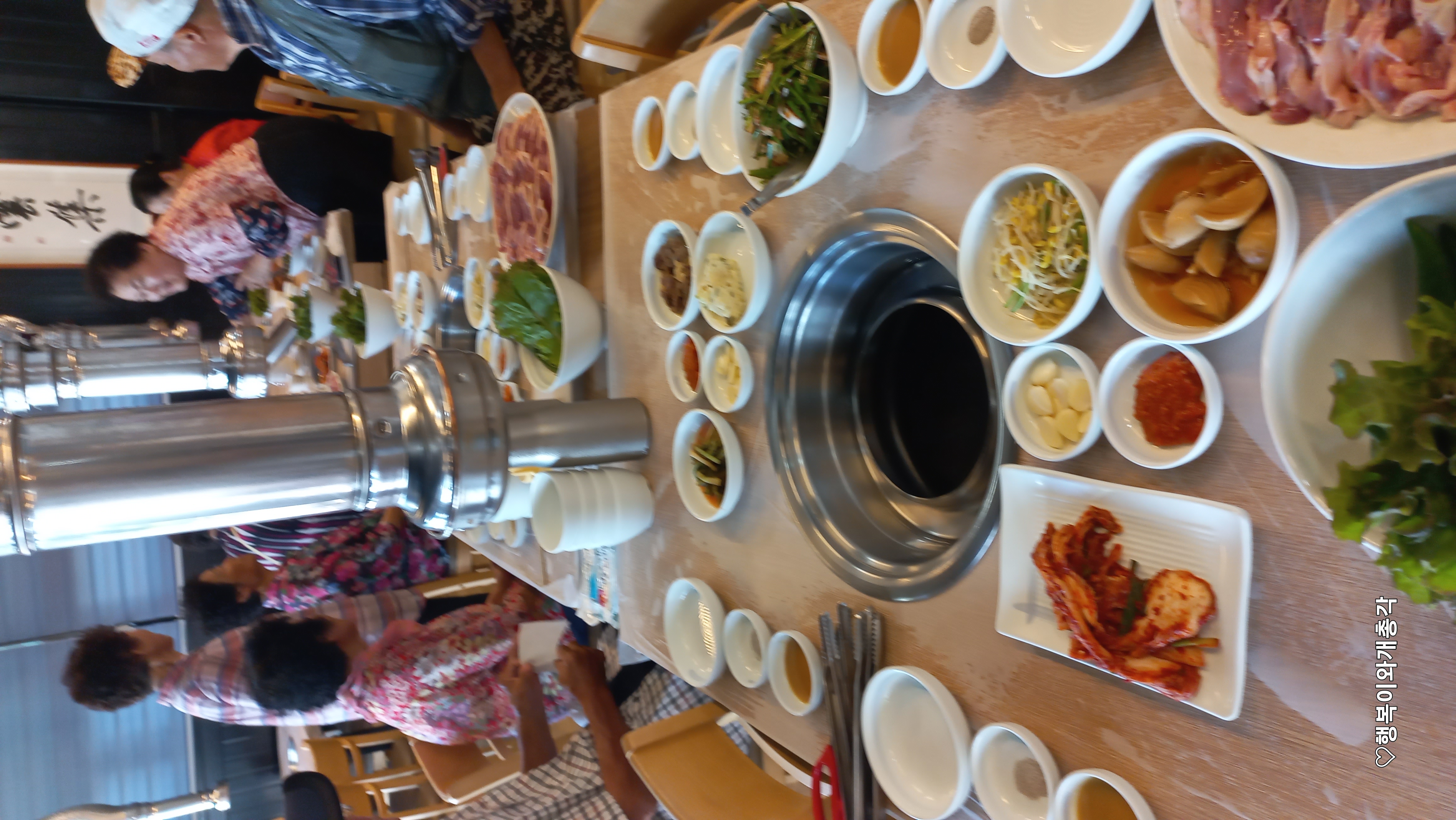 이렇게 가끔 모여 식사를 한다.거의 정기적인 농촌마을의 새로운 문화이다.늦게 오시는 분들이 계셔 자리가 비었다.